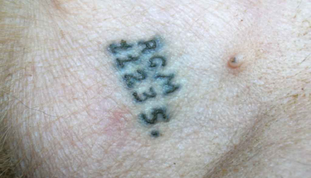 Естественно, со временем буквы и числа на ухе или пузе могут стать менее четкими, но даже спустя 10 лет такой уникальный номер выглядит узнаваемо и вполне читабельно, если процедура была проведена правильно. Вот так может выглядеть номер на животике взрослой собаки.